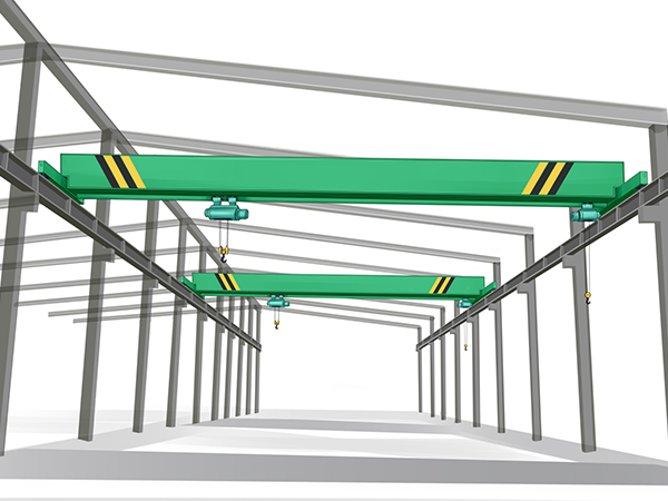 單梁行車由一個主梁、兩個端梁、大車運行機構、鋼絲繩電動葫蘆、電氣控制系統組成。橋架主機由一個主梁和二個端梁及大車運行機構由高強螺栓連接組成;大車運行機構由二個電機、二個減速機、四個行車輪(二個主動二個從動)安裝在端梁二側組成。鋼絲繩電動葫蘆由小車運行機構、起升機構、電氣系統組成;小車運行機構由電機、減速機、小車輪、電氣組成,安裝在行車主梁下面沿主梁下方工字鋼軌道做左右移動,常速為20m/min;起升機構由電機、減速機、卷筒及外殼、鋼絲繩、吊鉤、電氣組成,安裝在運行小車下面做上升和下降運行,有單速和雙速二種形式;單梁行車電氣控制系統由主機大車控制箱、電動葫蘆控制箱、超載限制器、斷火限位器、行程開關、遙控器、集電器、無接縫滑觸線、掉線輪、拖纜、拉絲、繩扣、法蘭螺栓等附件組成;單梁行車易損件有剎車環、導繩器、緩沖器、行程開關、吊線輪、集電器。單梁行車廣泛用于車間、工廠、倉庫、料場、工礦企業、鋼鐵化工、鐵路交通、港口碼頭等不同場合吊運貨物,禁止在易燃、易爆、腐蝕性介質環境中使用。